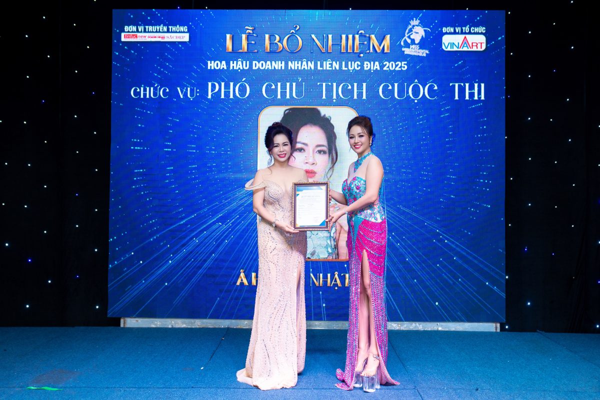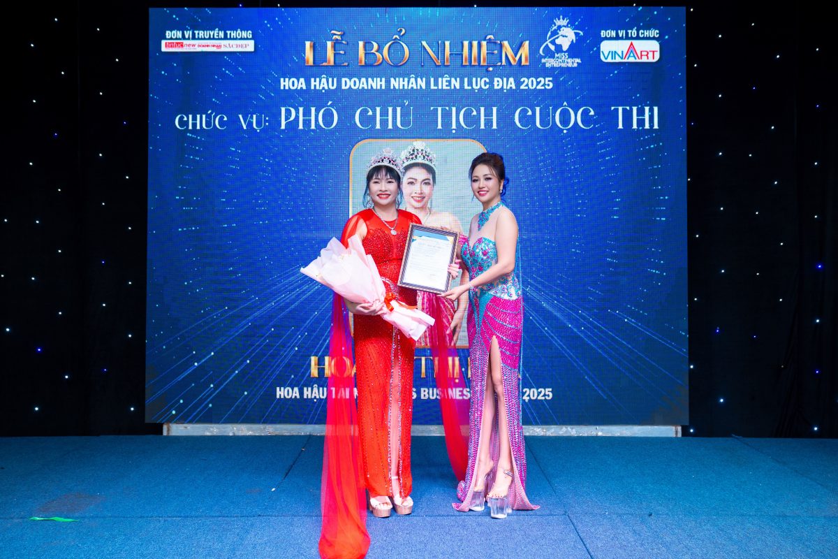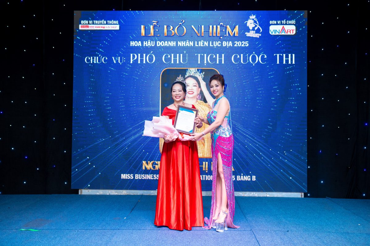 Để kiện toàn và nâng tầm quy mô tổ chức, Ban tổ chức thực hiện nghi thức bổ nhiệm ba nữ doanh nhân tài sắc vào vị trí Phó Chủ tịch Cuộc thi Hoa hậu Doanh nhân Liên Lục Địa 2025. Đây là những nhân vật sẽ đóng vai trò chiến lược trong việc điều hành, đối ngoại và quản lý chất lượng thí sinh. Ba nữ lãnh đạo được bổ nhiệm là: Á hậu Quý bà Thanh lịch Việt Nam – Trần Thị Thu Hương; Hoa hậu Doanh nhân Tài sắc Quốc tế 2025 Bảng B – Nguyễn Thị Nga và Hoa hậu Tài năng Miss Business Asean 2025 – Hoàng Thị Lụa; Á hoàng Nhật Lệ. Sự tham gia của họ là lời cam kết về một Ban Tổ Chức vững mạnh, đa chiều và chuyên nghiệp.