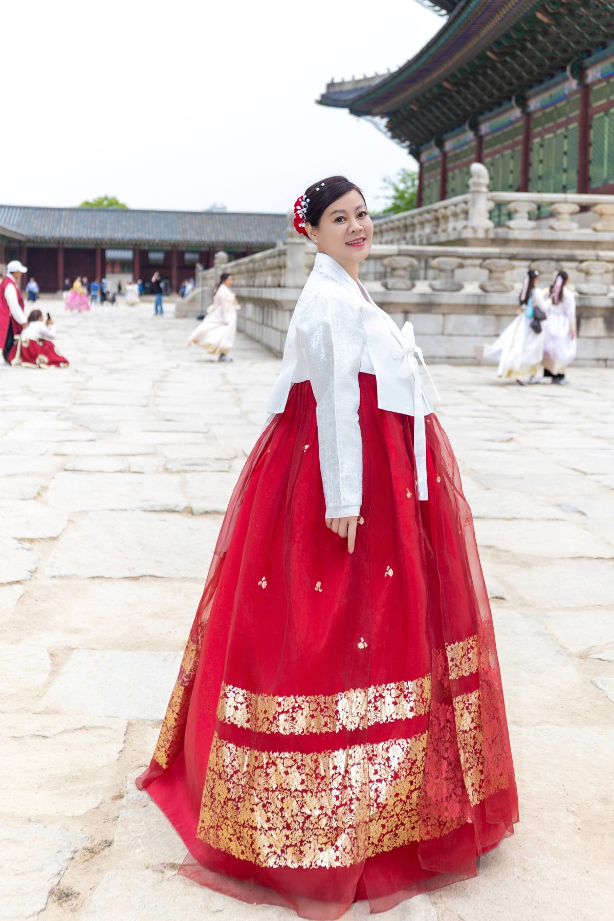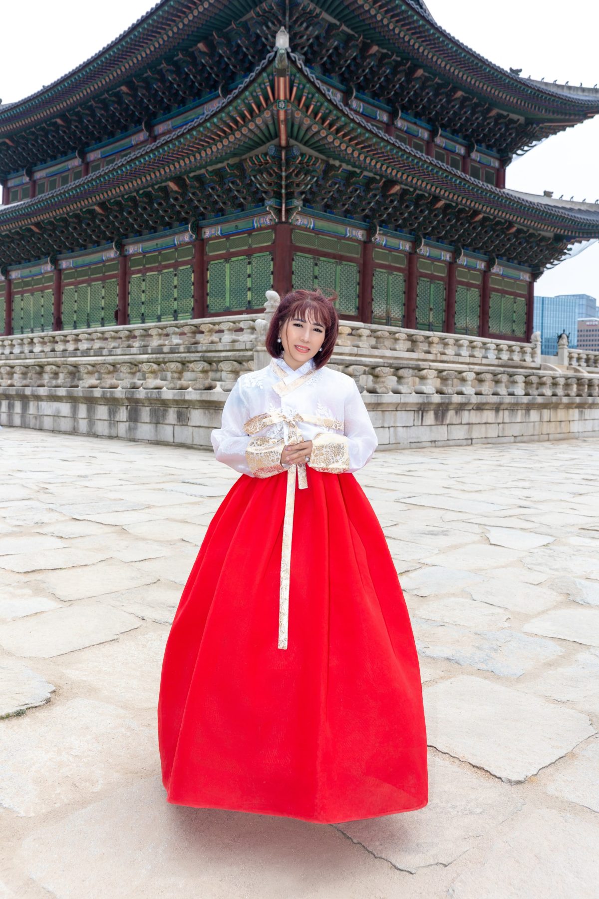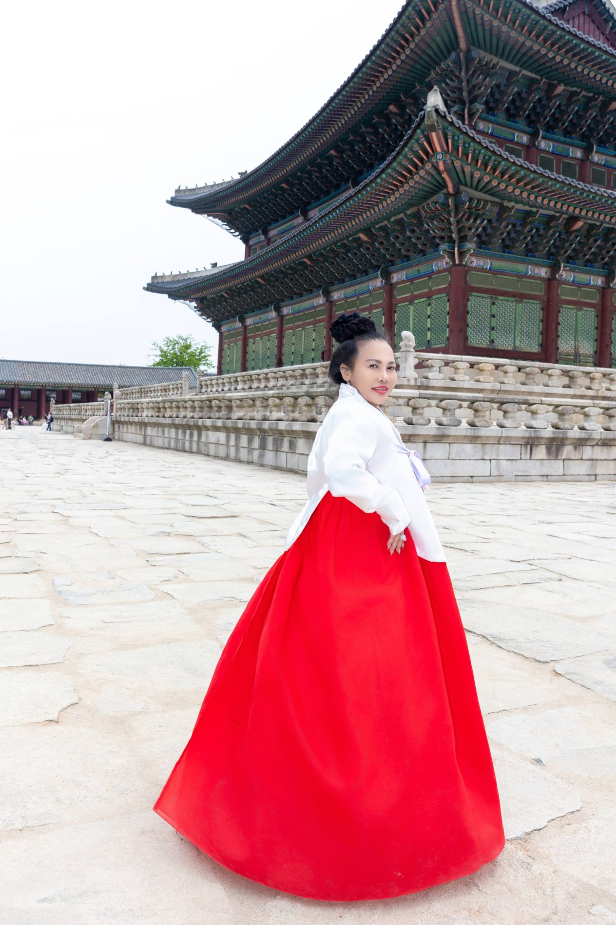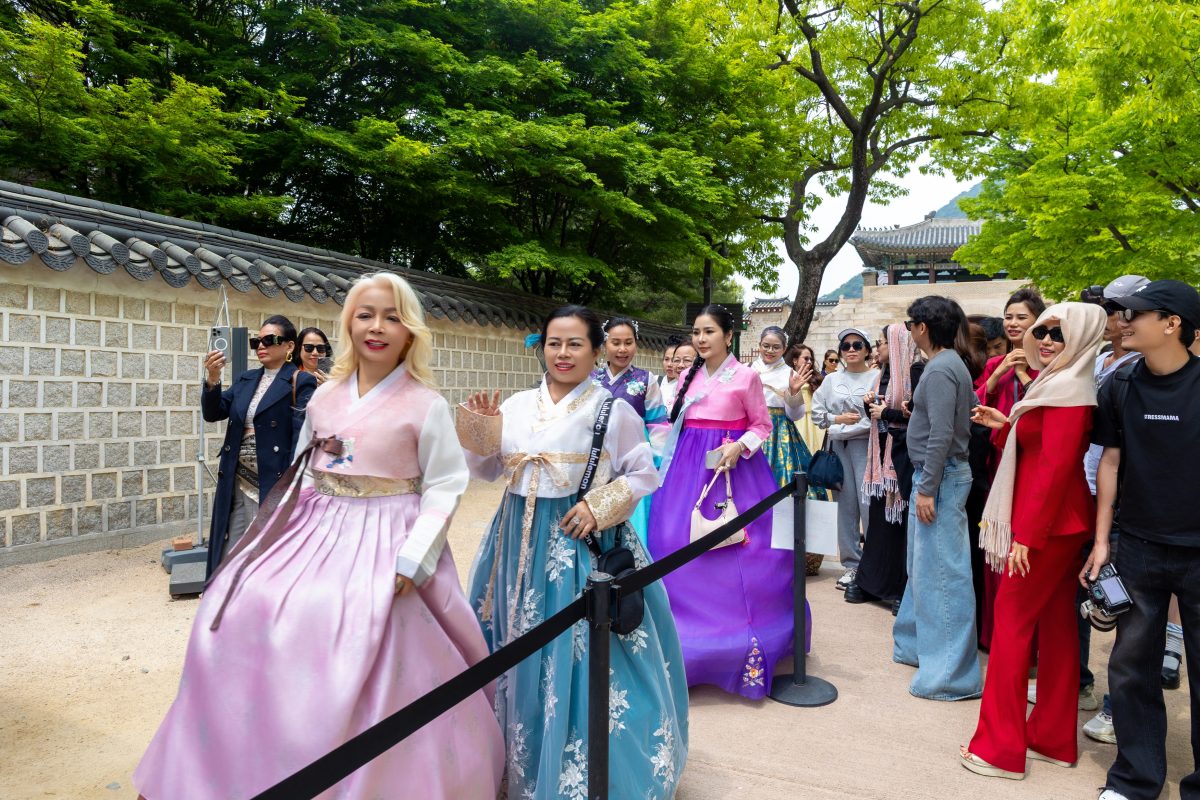 Điểm dừng chân đầu tiên là Gyeongbokgung Palace — Cung điện hoàng gia mang vẻ đẹp cổ kính, nơi từng khung hình đều như một thước phim lịch sử sống động. Trong không gian trang nghiêm ấy, các thí sinh khoác lên mình những bộ Hanbok truyền thống, tạo nên sự giao thoa tinh tế giữa vẻ đẹp hiện đại và giá trị văn hóa lâu đời.