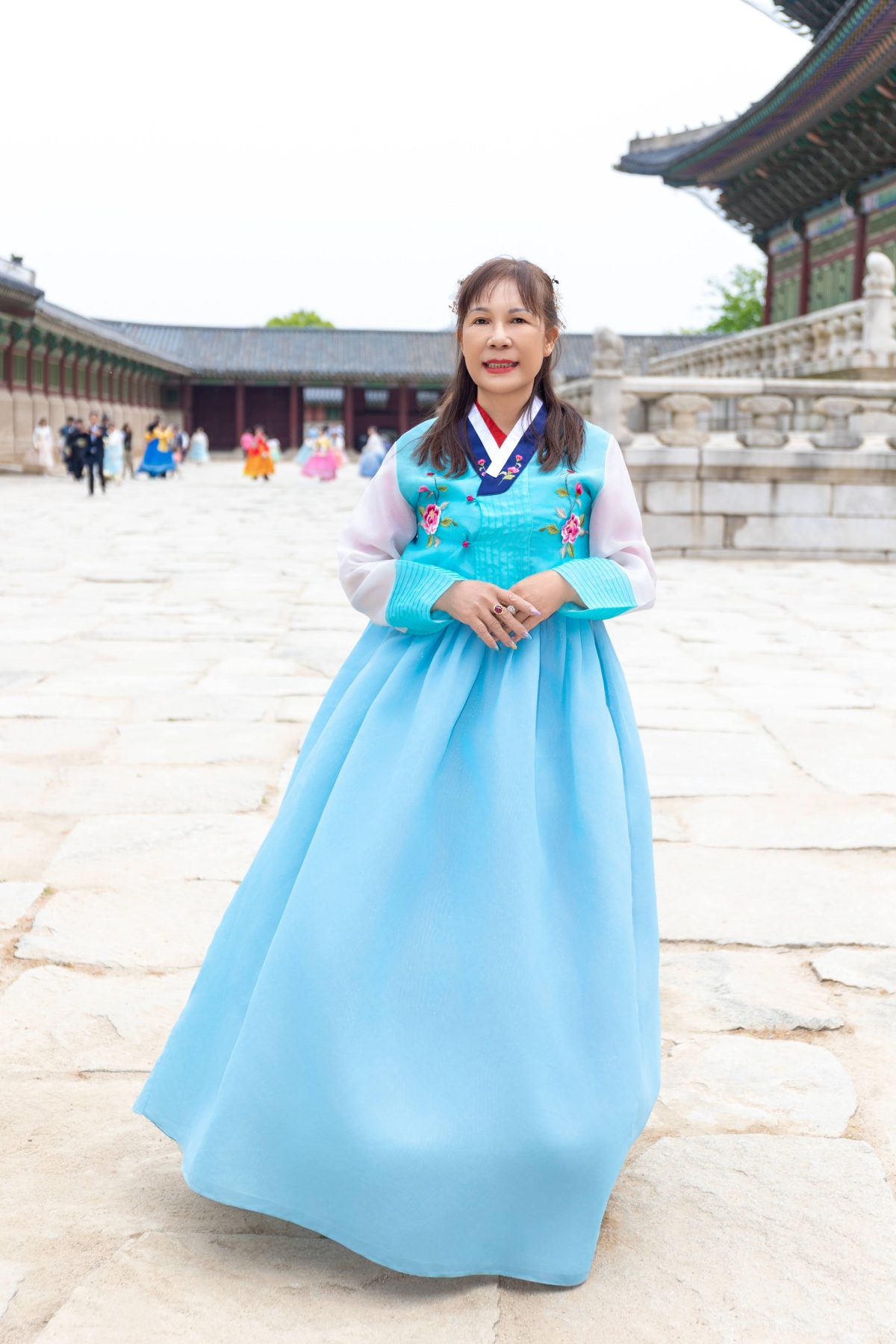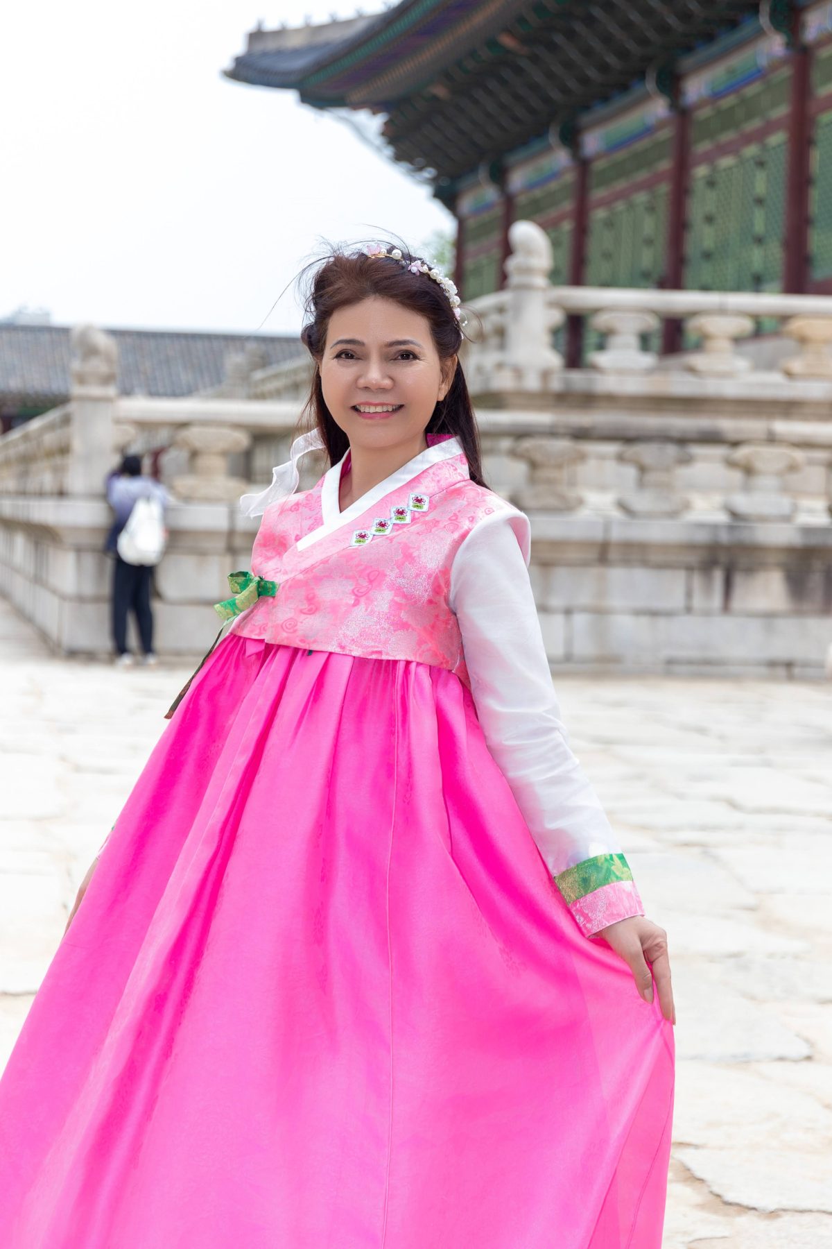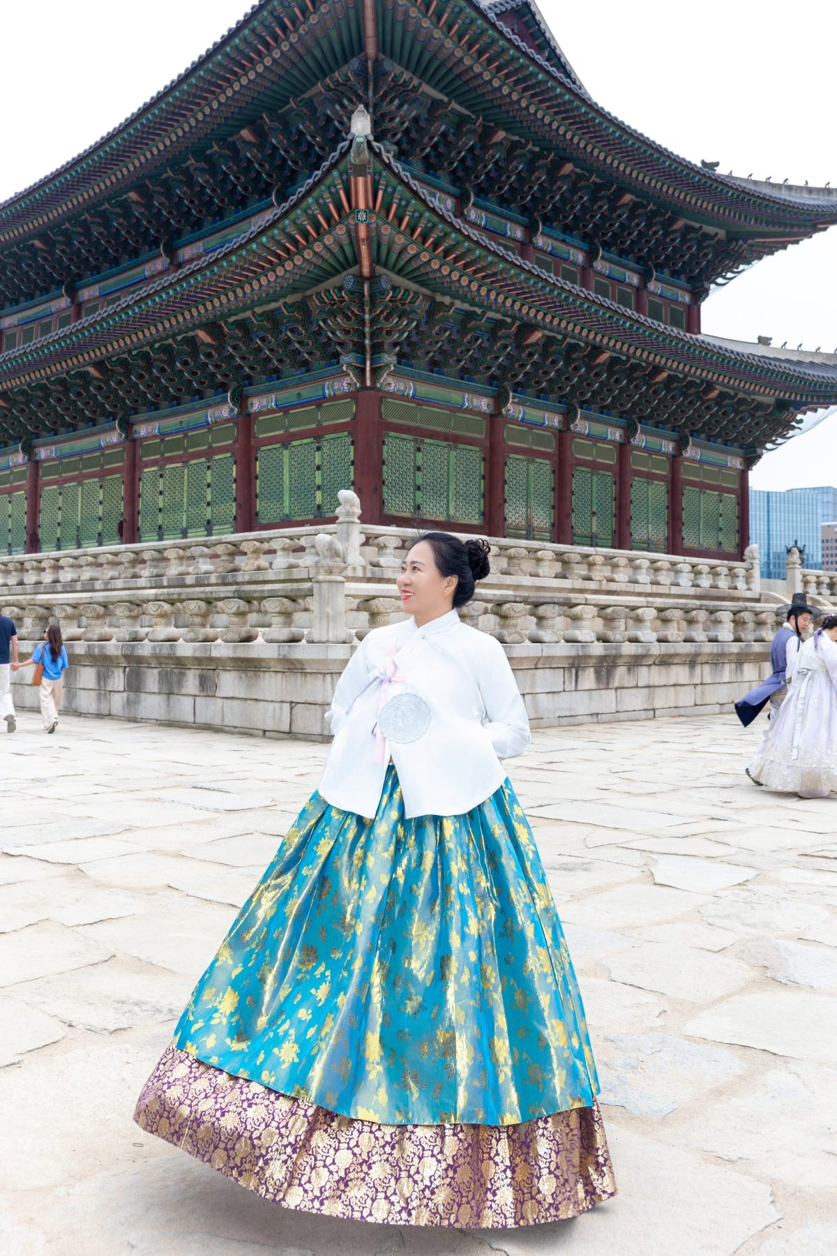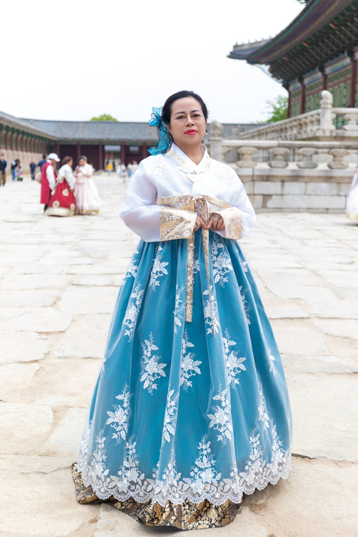Điểm dừng chân đầu tiên là Gyeongbokgung Palace — Cung điện hoàng gia mang vẻ đẹp cổ kính, nơi từng khung hình đều như một thước phim lịch sử sống động. Trong không gian trang nghiêm ấy, các thí sinh khoác lên mình những bộ Hanbok truyền thống, tạo nên sự giao thoa tinh tế giữa vẻ đẹp hiện đại và giá trị văn hóa lâu đời.